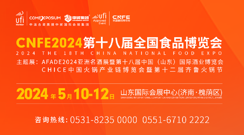 CNFE2024第十八屆全國(guó)食品博覽會(huì)將于2024年5月10日-12日在濟(jì)南市山東國(guó)際會(huì)展中心(槐蔭區(qū))盛大舉辦?!局黝}展:AFADE2024亞洲名酒展暨第十八···