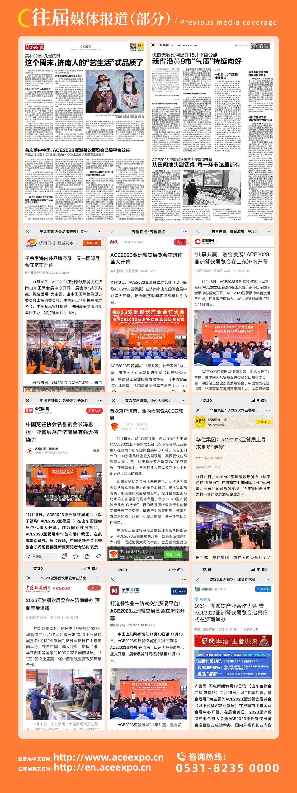 當(dāng)前,酒食餐行業(yè)均處于存量競(jìng)爭(zhēng)時(shí)代下的轉(zhuǎn)型期,為帶領(lǐng)更多從業(yè)者走出困境,也為促進(jìn)餐飲業(yè)態(tài)融合發(fā)展,推動(dòng)酒食餐行業(yè)實(shí)現(xiàn)共贏、共好,ACE2024亞洲餐飲展覽會(huì)(以下簡(jiǎn)稱(chēng)ACE2024亞餐展)將于11月15-17日在濟(jì)南市山東國(guó)際會(huì)展中心舉辦。