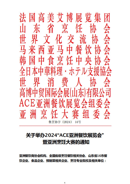 舉辦2024“ACE亞洲餐飲展覽會(huì)”暨亞洲烹飪大賽的通知