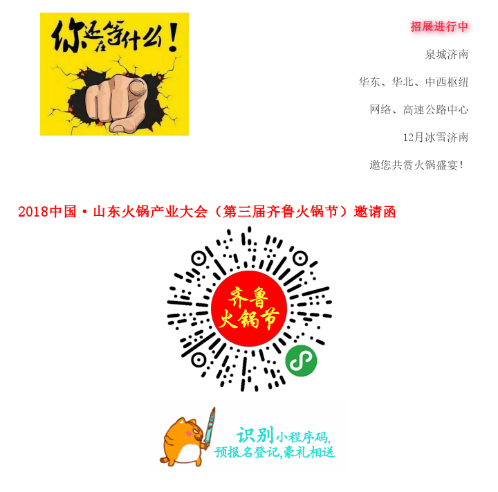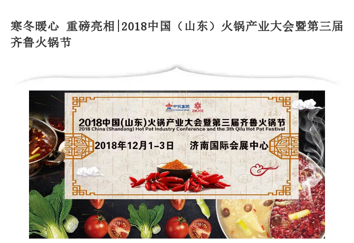 寒冬暖心 重磅亮相|2018中國(山東)火鍋產(chǎn)業(yè)大會(huì)暨第三屆齊魯火鍋節(jié)
