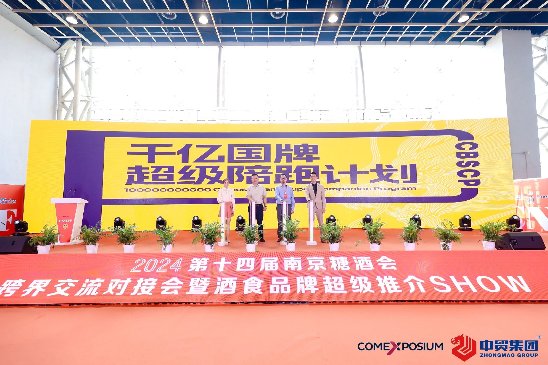 剛結(jié)束的第十四屆南京糖酒會(huì)即由中國(guó)酒業(yè)協(xié)會(huì)、中國(guó)酒類(lèi)流通協(xié)會(huì)、江蘇省工業(yè)和信息化廳、江蘇省商務(wù)廳、江蘇省工商業(yè)聯(lián)合會(huì)指導(dǎo),江蘇省財(cái)貿(mào)輕紡工會(huì)、南京市商務(wù)局支持,江蘇省酒類(lèi)行業(yè)協(xié)會(huì)、法國(guó)高美艾博展覽集團(tuán)、中貿(mào)科技集團(tuán)、中法合資高博中貿(mào)國(guó)際會(huì)展集團(tuán)主辦,中法合資高博中貿(mào)國(guó)際會(huì)展(南京)有限公司承辦,宿遷市酒產(chǎn)業(yè)發(fā)展促進(jìn)中心戰(zhàn)略合作。