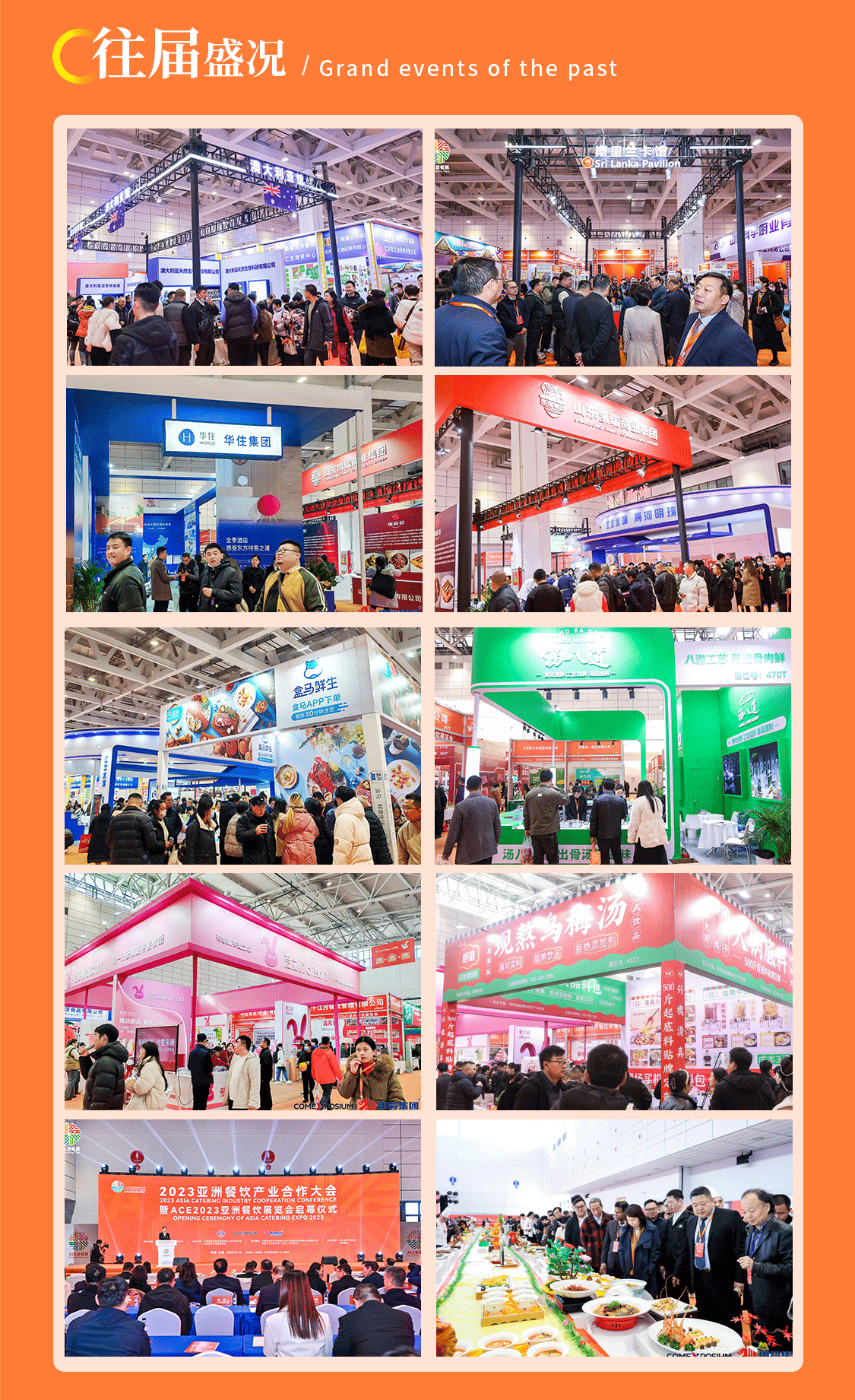 ACE亞餐展作為亞洲級別的餐飲業(yè)全產(chǎn)業(yè)鏈高端盛會,定位為“國際化、品牌化、專業(yè)化、實效化、高端化”展會,集“展覽展示+論壇研討+精準(zhǔn)對接+跨界融合”四大功能于一體,是鏈接國內(nèi)外餐飲產(chǎn)業(yè)上中下游產(chǎn)業(yè)鏈、引領(lǐng)餐飲產(chǎn)業(yè)發(fā)展趨勢、傳播先進(jìn)產(chǎn)品及經(jīng)營理念、推動餐飲業(yè)全產(chǎn)業(yè)鏈開放合作、健康發(fā)展的國際領(lǐng)先餐飲行業(yè)交流平臺。展品范圍涵蓋火鍋、預(yù)制菜、燒烤、餐飲連鎖加盟、西餐用品、糧油、調(diào)味品、酒類、佐餐飲料、酒店用品及餐廚設(shè)備等。