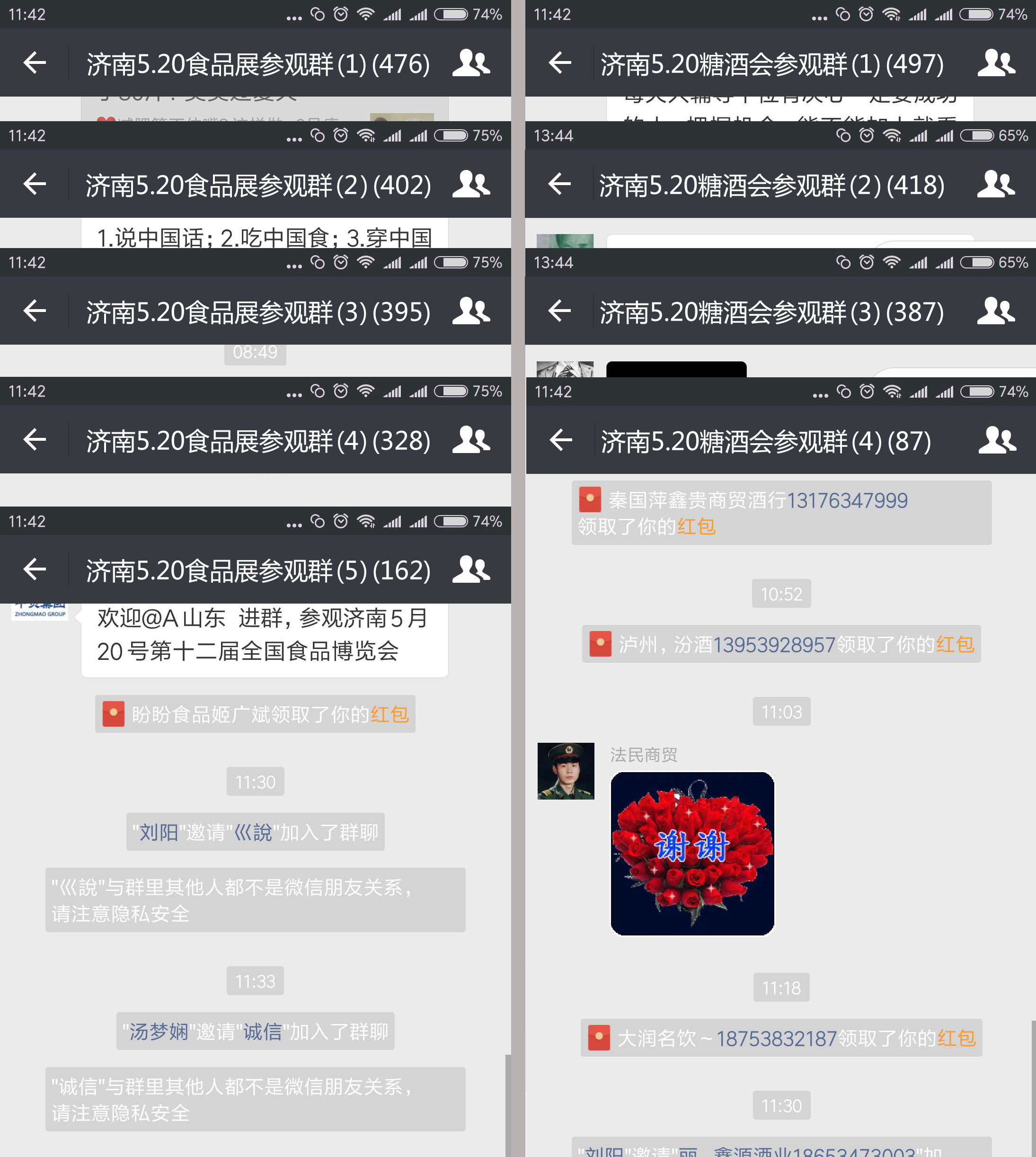 微信群成員覆蓋全國重點(diǎn)城市各大副食品城,經(jīng)銷商,代理商等相關(guān)行業(yè),目前已建立多個(gè)專業(yè)觀眾微信群,每個(gè)群成員接近500人。目前,微信群還在如火如荼的建立當(dāng)中,相信最后的結(jié)果一定驚為天人。