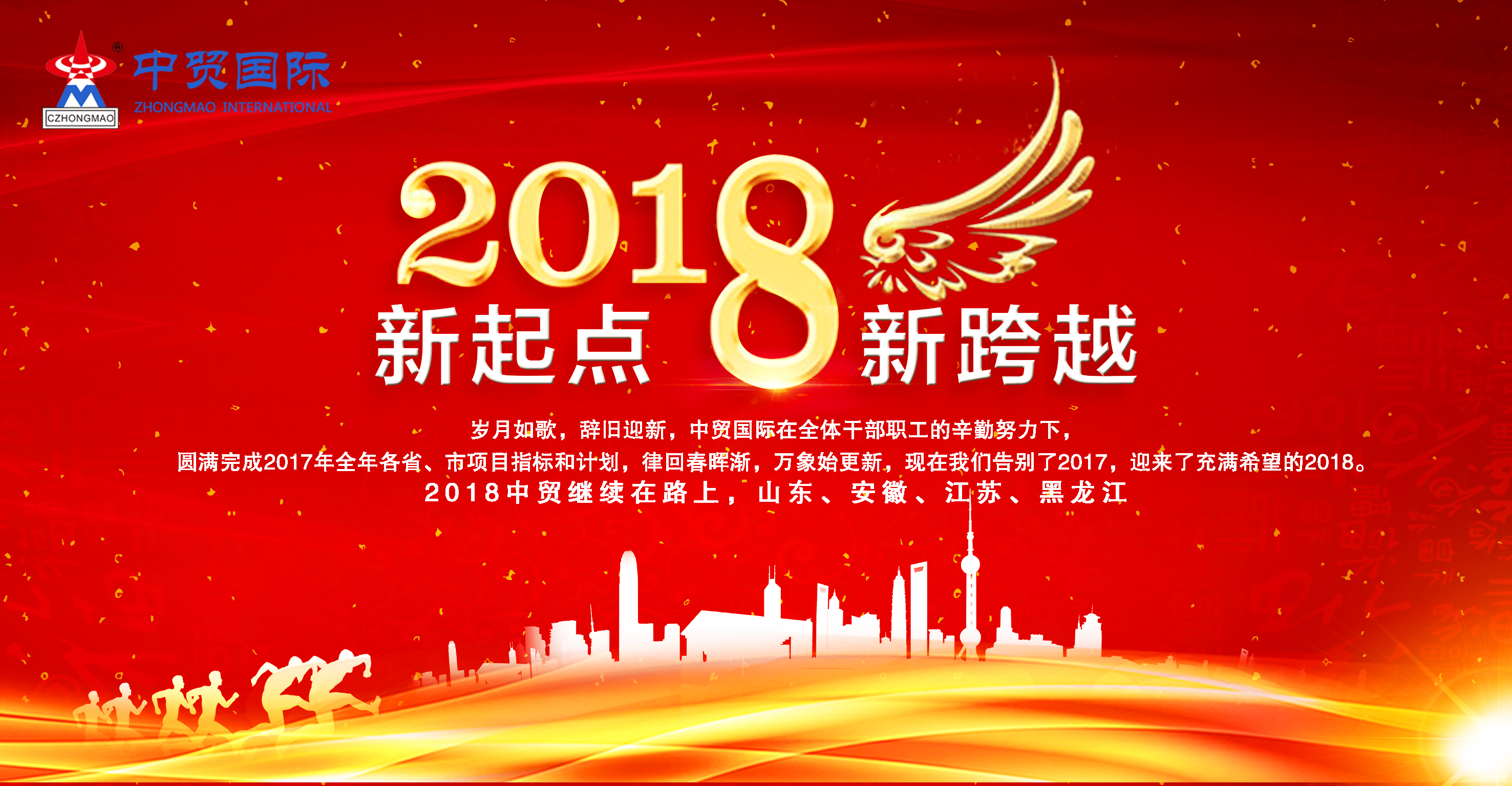 凝聚力量再創(chuàng)輝煌2018中貿(mào)集團繼續(xù)在路上 歲月如歌,辭舊迎新,中貿(mào)國際在全體干部職工的辛勤努力下,圓滿完成2017年全年 各省、市項目指標和計劃,律回春暉漸,···